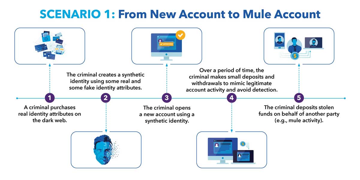 For many decades, criminals have used stolen, altered or forged paper documents (e.g., birth certificates, passports, utility bills) to open new accounts for nefarious purposes, including writing bad checks and withdrawing funds, or maxing out on credit and disappearing. Today, large-scale data breaches have generated a plethora of PII for criminals to exploit. Automated bots and scripts have enabled criminals to open accounts more quickly and at scale, and to obtain information about an institution’s Know-Your-Customer (KYC) and onboarding requirements. More recently, generative AI tools have made the creation of fake digital documents and synthetic identities easier, more convincing and highly efficient.
